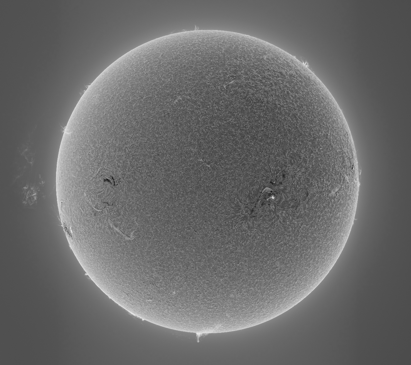 High five on the fifth of May... a grand new active region rotating into view, a massive prominence unleashed and blown away by the solar wind, handsome sunspot 1471, some wonderful filaments arching across the chromosphere... and clear skies to enjoy all of the above. A fantastic day to observe the sun. Here is a color version.