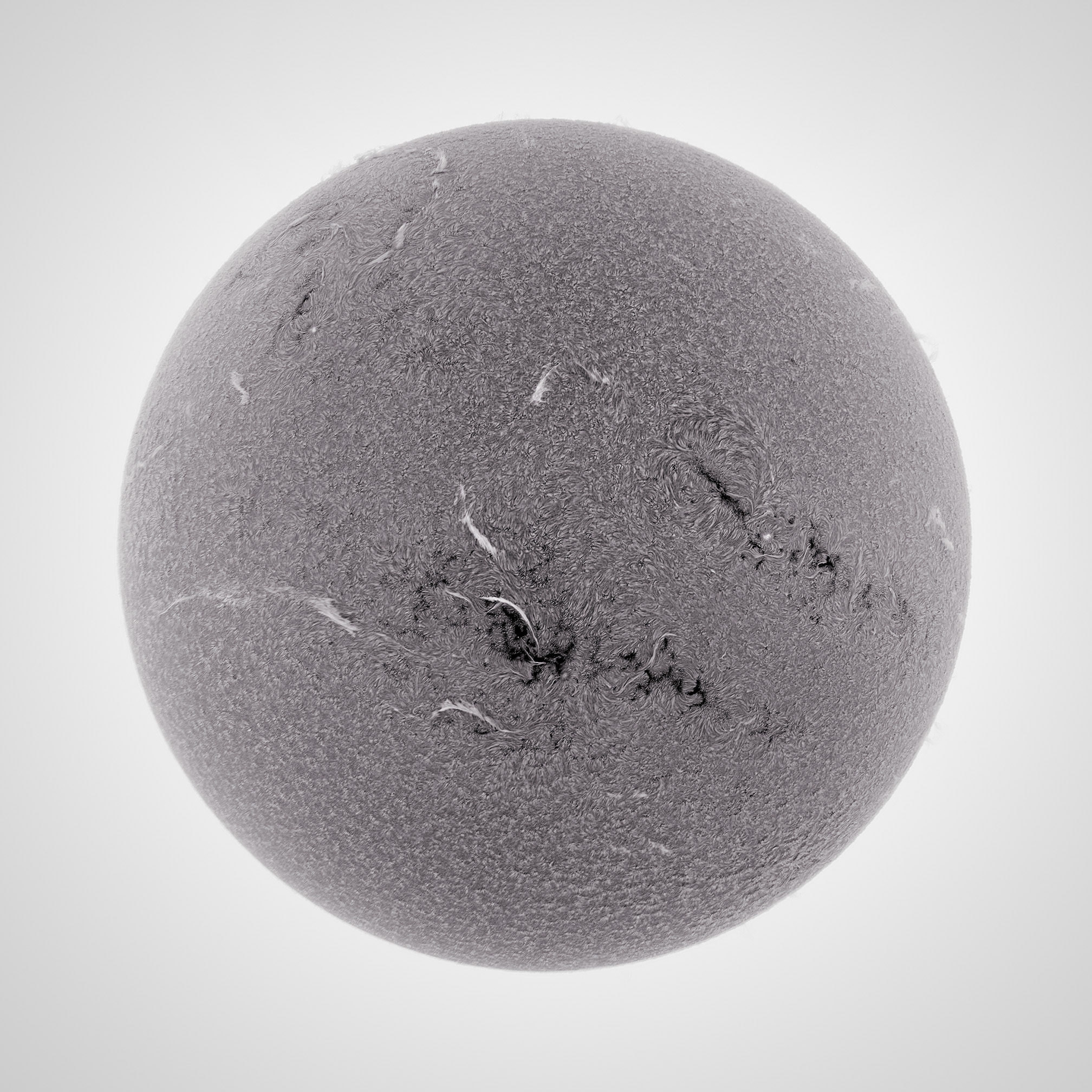 A filament filled sun, recorded through a Lunt LS152 solar telescope with 90mm Coronado Solarmax affixed to front, narrowing the bandpass to approximately .5 angstrom. You can see a comparison of the contrast with and without the Solarmax 90 here.