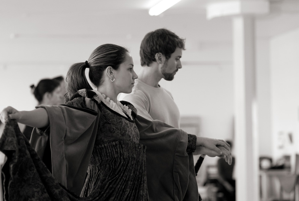 Emily Polino and Brian Pagkos in rehearsal at the studio.
