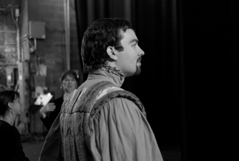 Casey Denton posing (costume designer Donna Massimo and stage manager Beth Elkins, not posing)