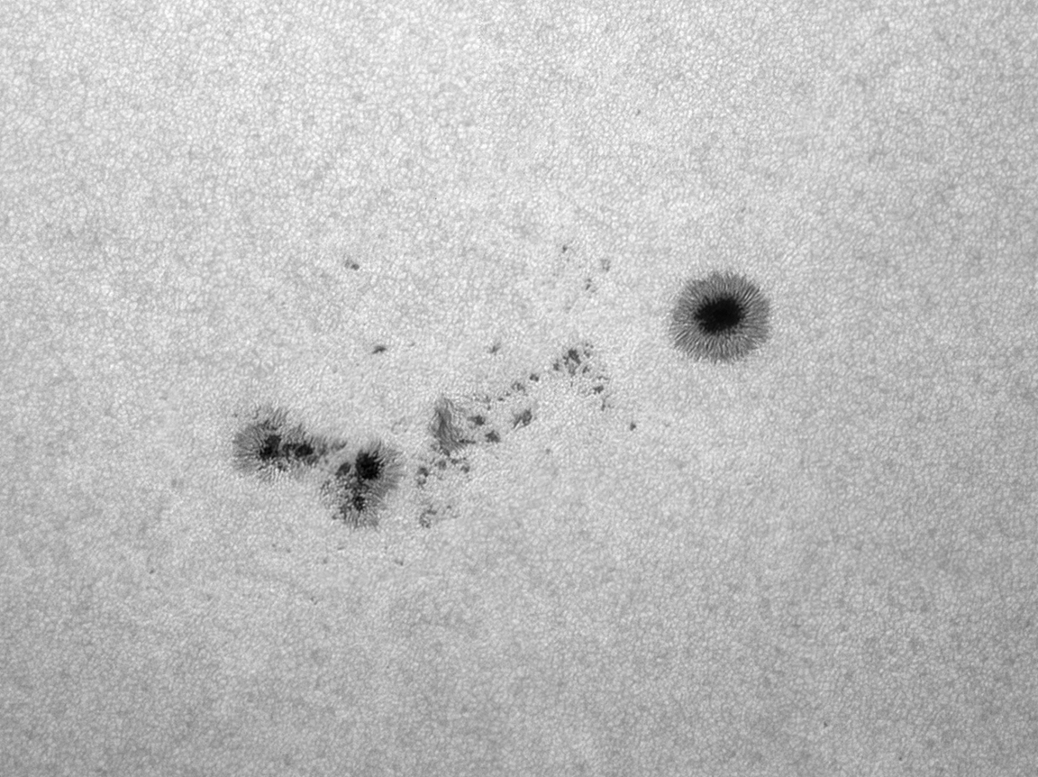 November 8, 2020 / captured with a 10" Astro-Physics Mak/Cass at 3.7 meter focal length, full aperture Baader Astro-Solar film whiter light filter and PGR Grasshopper camera.