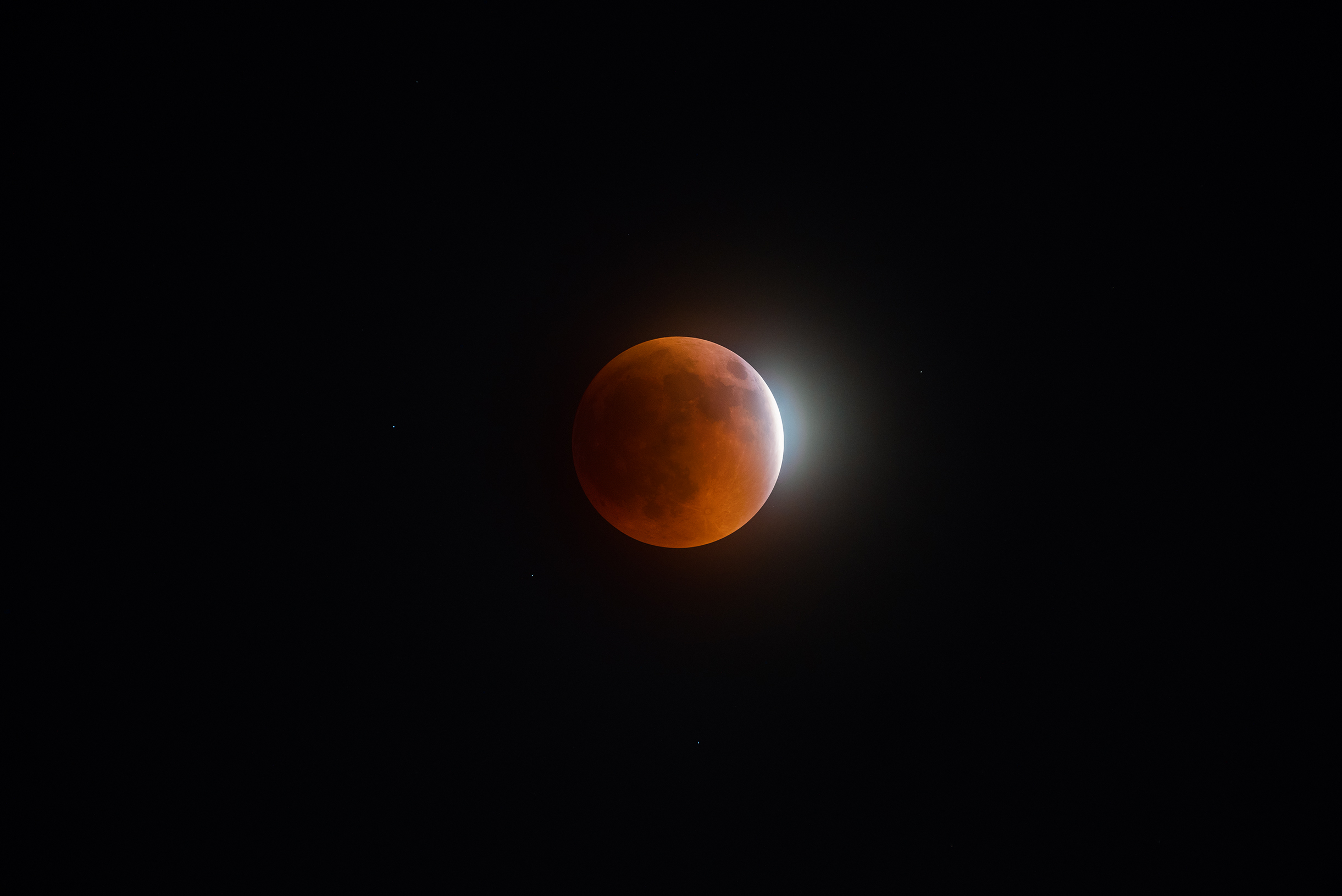 The lunar eclipse of May 15, 2022 began with a hazy sky, the moon enshrouded in the glow of the atmosphere. As the eclipse progressed, the conditions improved.